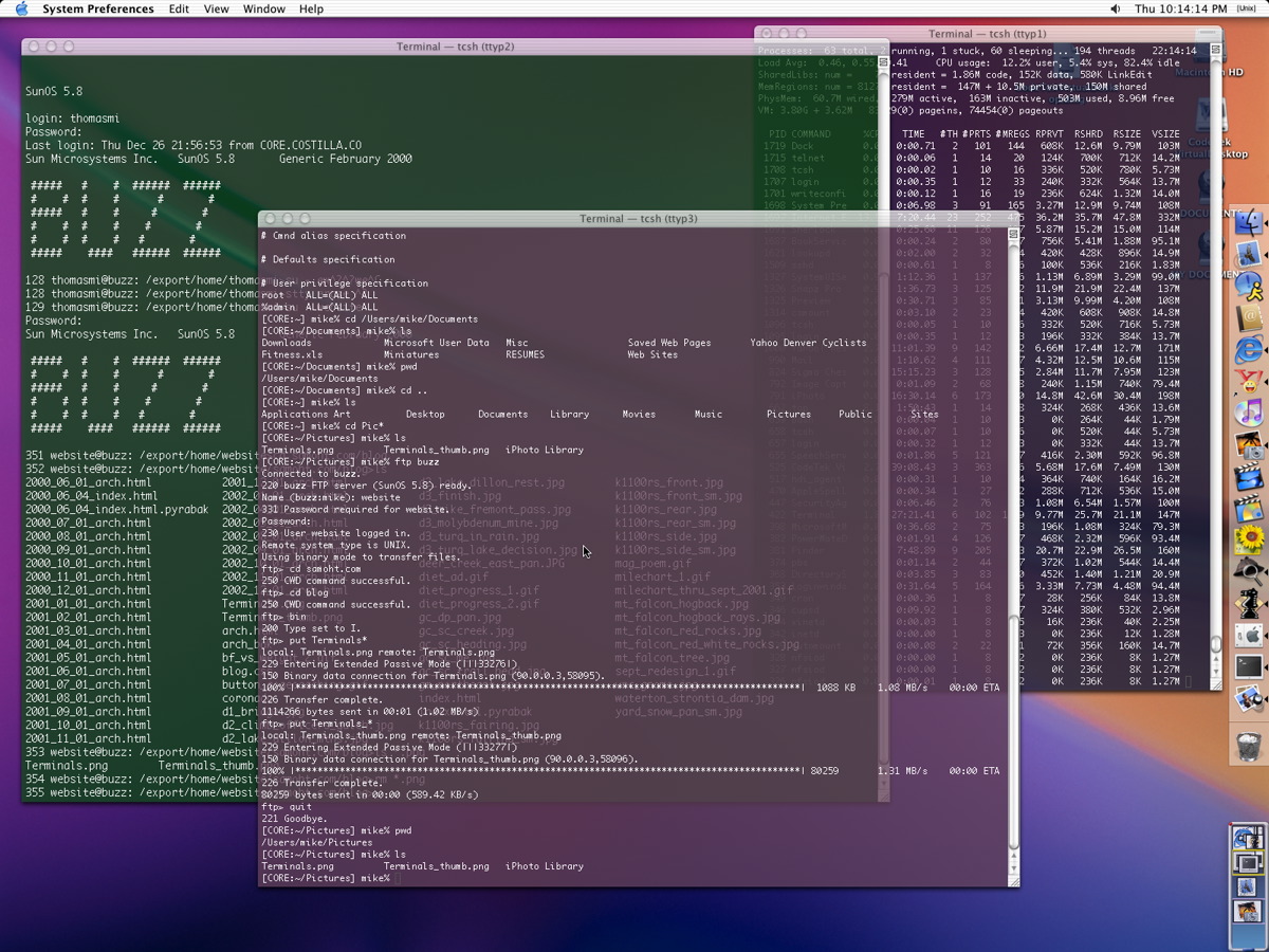 On the other hand, I've had me some fun, too. I published pictures from the International Motorcycle Show to my .Mac account. After installing the free Apple Developer Tools package (which includes gcc), I downloaded, compiled, and installed the generic Unix version of the Vim editor with no problems whatsoever. I reestablished the backup script, as well as the uptime-generation scripts that publish to my This Old Sparc subsite, which involved getting NFS mounts up and working on the Mac (no problem). I had a ball (and spent hours) importing my photo library from my aging Dell 266 laptop, and arranging photo albums from them (this is where iPhoto crashed a few times).